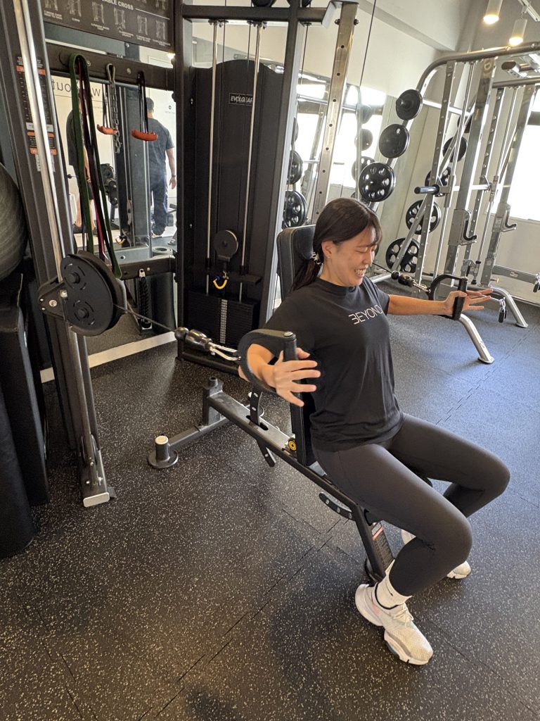 エネルギーを多く使う大きな筋肉からトレーニングを行い、最後はショルダープレスで追い込ませて頂きました😁